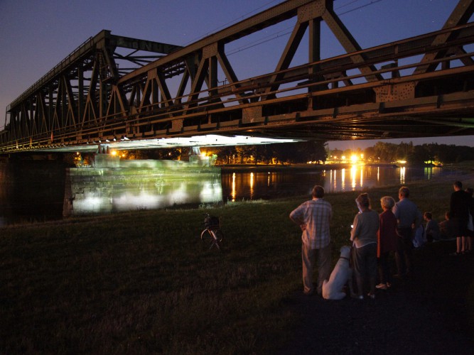 The movie was screened on the railway bridge on Oder, it was optically fitted to the real horizon and was presented to the citizens of Opole, so they could see how “their” river looked in its far and different parts.